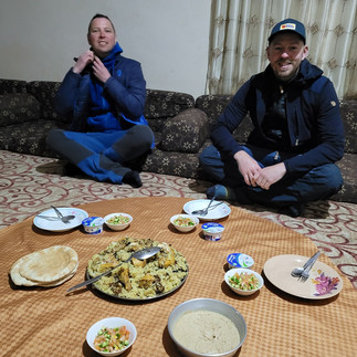 Keď sme po dedine rozhlásili, že hľadáme miesto na nocľah dobehol za nami týpek, že má beduínsky stan v záhrade. Takže sme sa ubytovali tam a dokonca nám uvarili domácu večeru a bola naozaj skvelá! škoda, že si nepamätám ako sa jedlo volalo:)